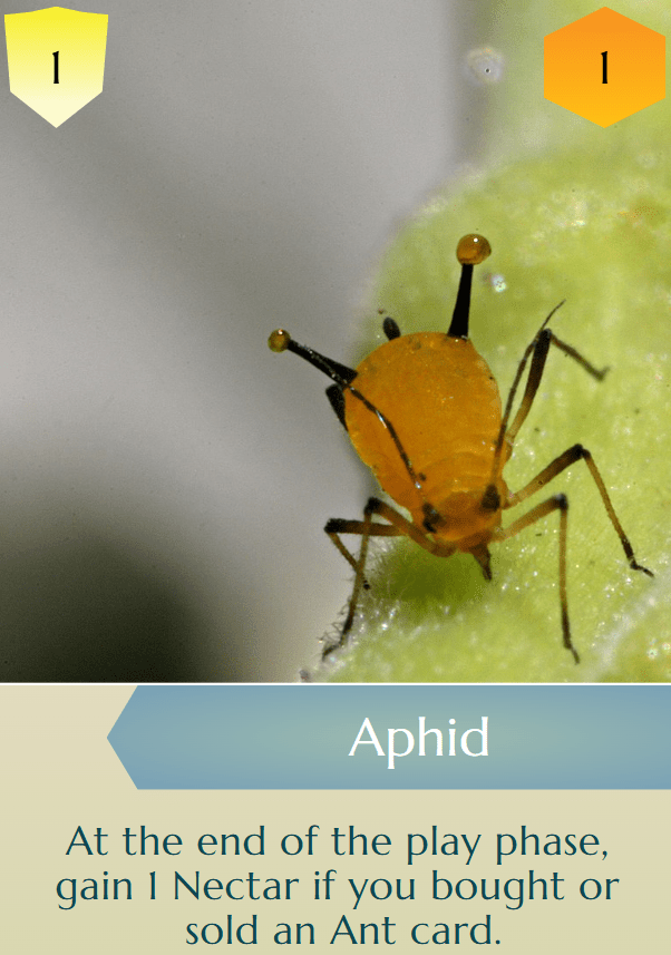 After the Capture phase, the play phase is where each player takes turns either playing bugs they caught, paying their cost in a resource called nectar to add them to their collection, or selling them for additional nectar.