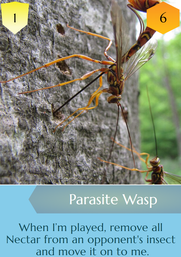 The game is played over 10 rounds, each consisting of a Capture Phase and a Play Phase. During the Capture Phase, each player will take turns “Capturing” two insects from a number of Insect cards revealed from a deck.
