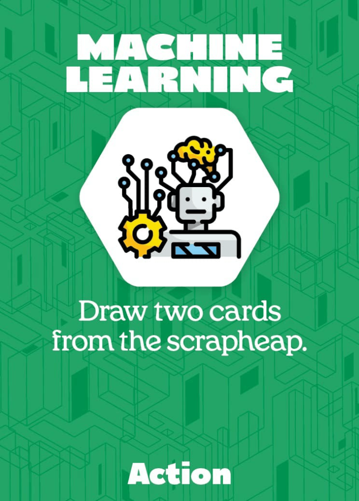 Action cards can be played after a player has picked up their cards for the turn and can provide a range of powerful effects like drawing extra cards, returning components from the discard pile, or even removing components from another player’s workshop!